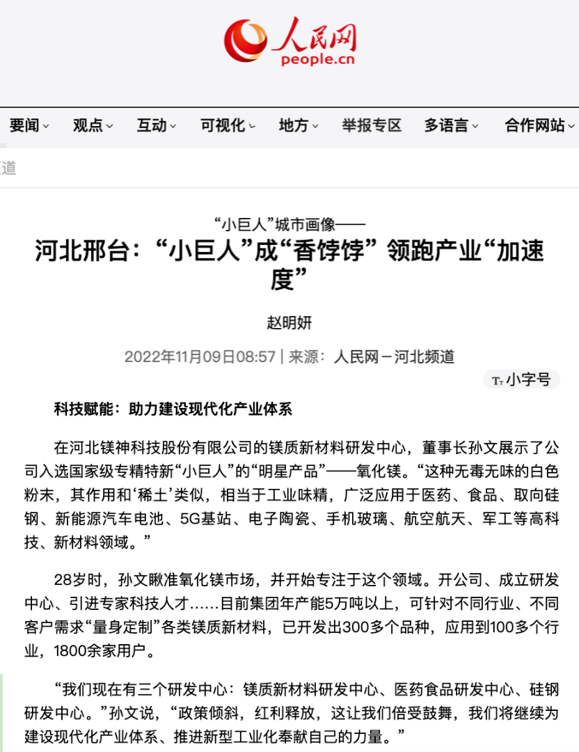 人民網報道!“小巨人”鎂神