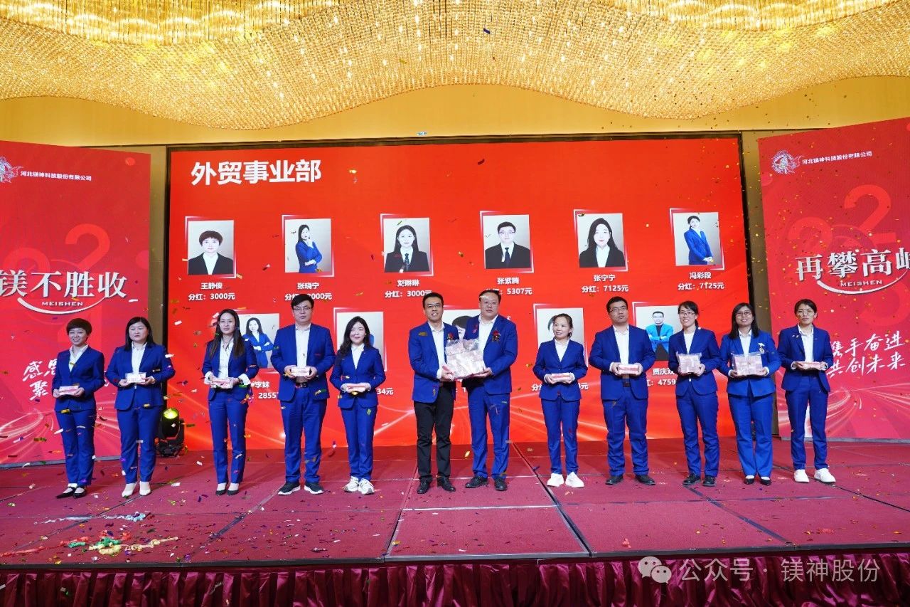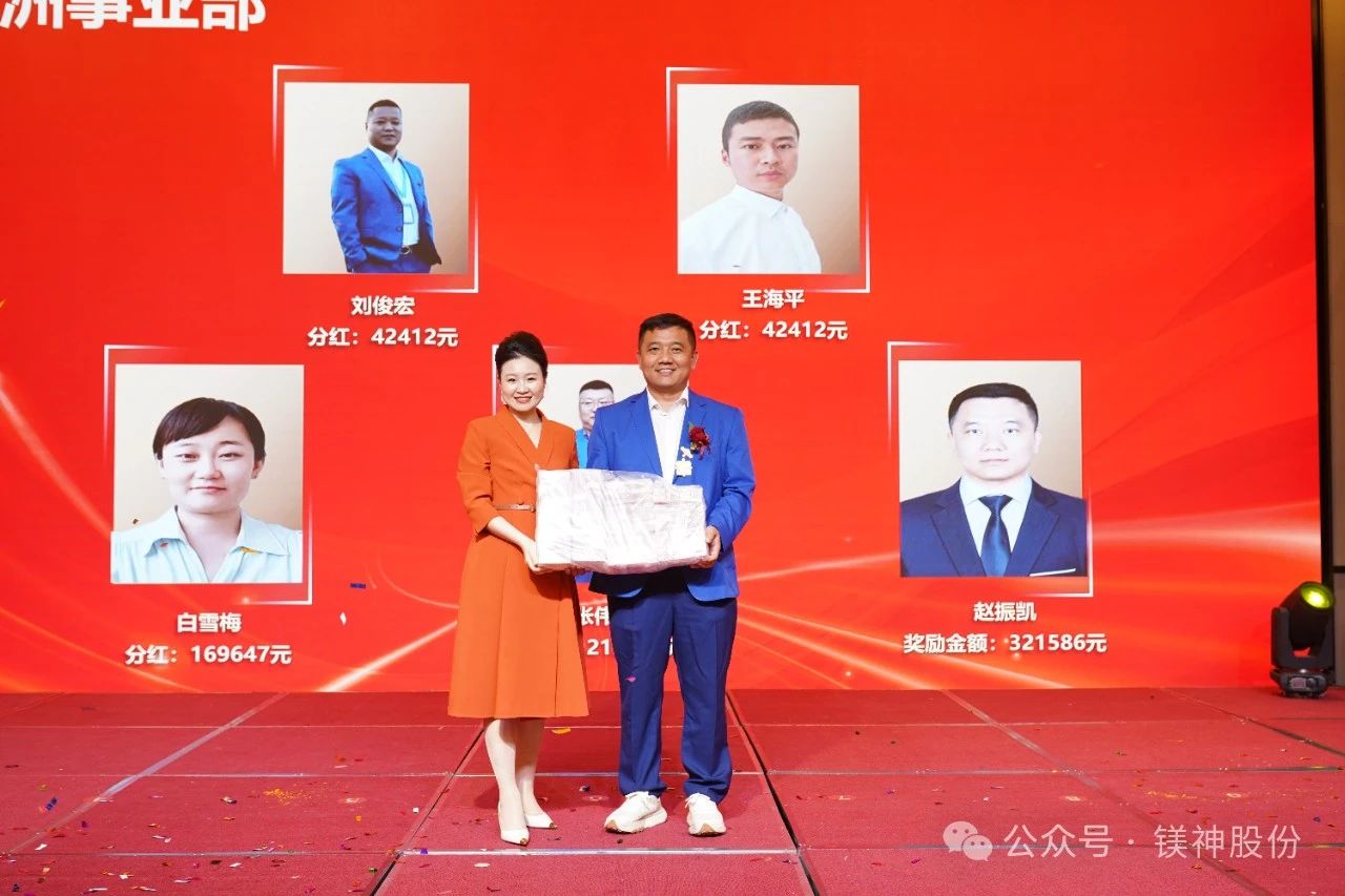 3月31日,河北鎂神科技股份有限公司2024年度總結(jié)暨表彰大會(huì)在邢臺(tái)市瑞爵酒店舉行,本次共發(fā)放獎(jiǎng)金1227.88萬(wàn)元!其中第四季度提成138.34萬(wàn)元、銅級(jí)榮休紀(jì)念獎(jiǎng)0.67萬(wàn)元、私欠清零4.3萬(wàn)元、評(píng)優(yōu)評(píng)模76.8萬(wàn)元、特殊貢獻(xiàn)獎(jiǎng)18萬(wàn)元、優(yōu)秀團(tuán)隊(duì)11萬(wàn)元、專項(xiàng)獎(jiǎng)金179.64萬(wàn)元、職能中心年終獎(jiǎng)72.84萬(wàn)元、利潤(rùn)中心分紅698.3萬(wàn)元、扎根非洲、熱愛(ài)非洲、建設(shè)非洲獎(jiǎng)28萬(wàn)。