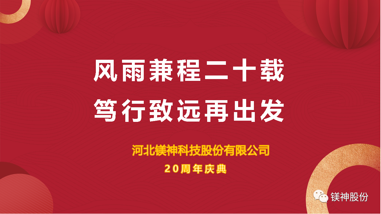 河北鎂神科技股份有限公司(以下簡稱“鎂神科技”)將于近期舉辦20周年慶典暨大客戶交流活動。此次活動以“合作共贏攜手未來”為主題,旨在感謝各位合作伙伴多年來的支持與信任,共同探討未來的合作發(fā)展。