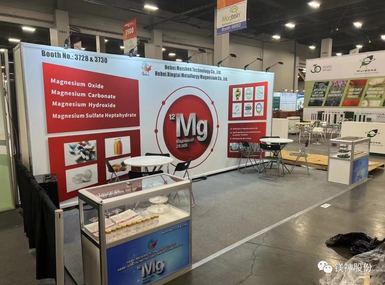 此次展會上,河北鎂神科技股份有限公司(展位號為3728&3730)攜主要產品參展,公司主要展覽產品為醫藥級、食品級、工業級的氧化鎂、顆粒氧化鎂、碳酸鎂、顆粒碳酸鎂、硫酸鎂、氫氧化鎂等系列產品.